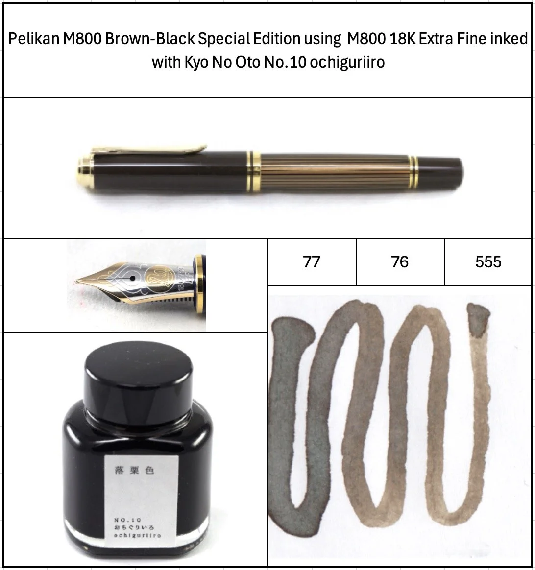 Pelikan M800 Brown-Black Special Edition using M800 18K Extra Fine inked with Kyo No Oto No.10 ochiguriiro